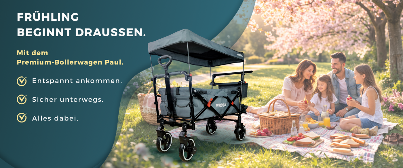 FROSAL Faltbarer Bollerwagen Leo mit Sonnendach und Stauraumerweiterung