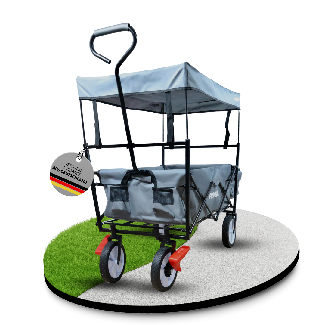 Der Transport wird auch durch das geringe Eigengewicht von gerade einmal 12,5 kg erleichtert. Doch obwohl der Bollerwagen selber ein Leichtgewicht ist, kann er eine Zuladung von bis zu 80 kg tragen.